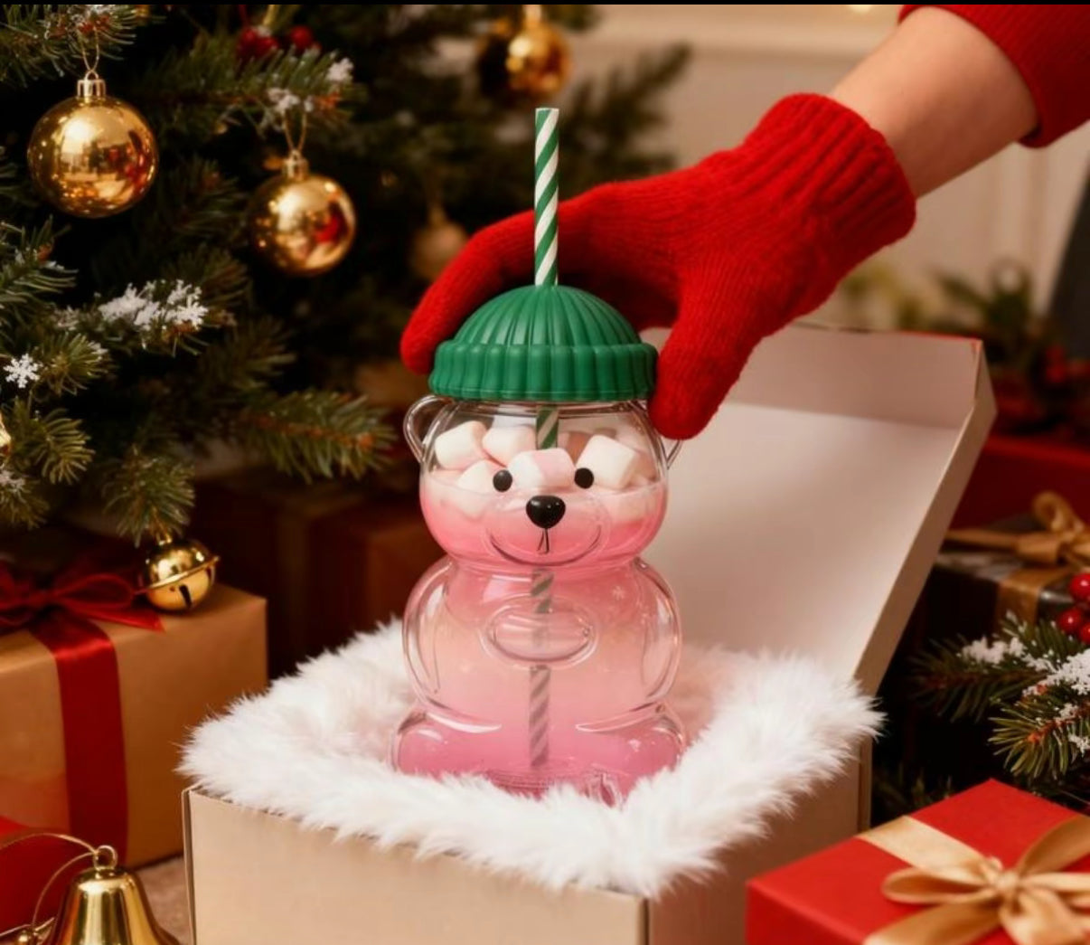This adorable hand-blown glass cup features a festive bear design that brings extra cheer to the holiday season. Carefully crafted by skilled artisans, each cup has its own unique charm and character. Its clear, durable glass and playful shape make it perfect for serving drinks, displaying treats, or gifting to someone special. A cute and cozy addition to any Christmas collection.